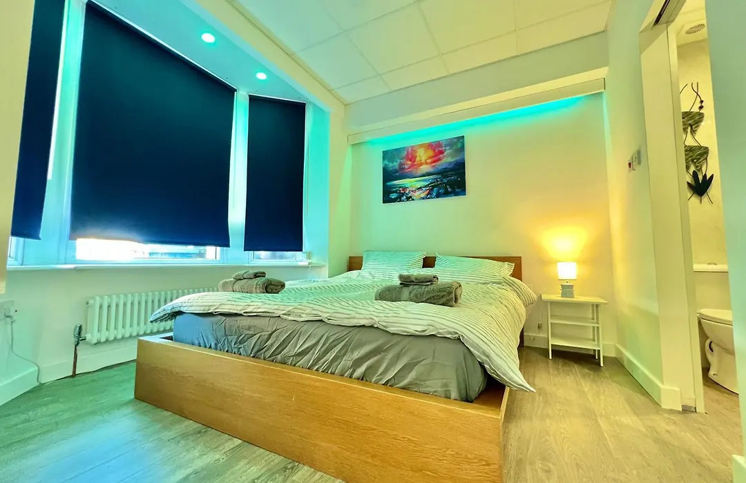 The 1-room Lux Super King Private Bath Mediacity, Mufc, Salford welcomes guests with ironing facilities, along with modern amenities like a TV. Bathroom facilities include a separate toilet and a shower. A hair dryer and bath sheets can also be found.