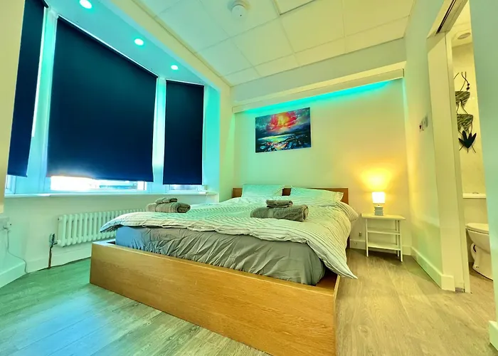 Staying at Lux Super King Private Bath Mediacity, Mufc, Salford, guests can relax on a terrace 2.6 km from MediaCityUK Business Park. Wi-Fi and parking are also available at this homestay.